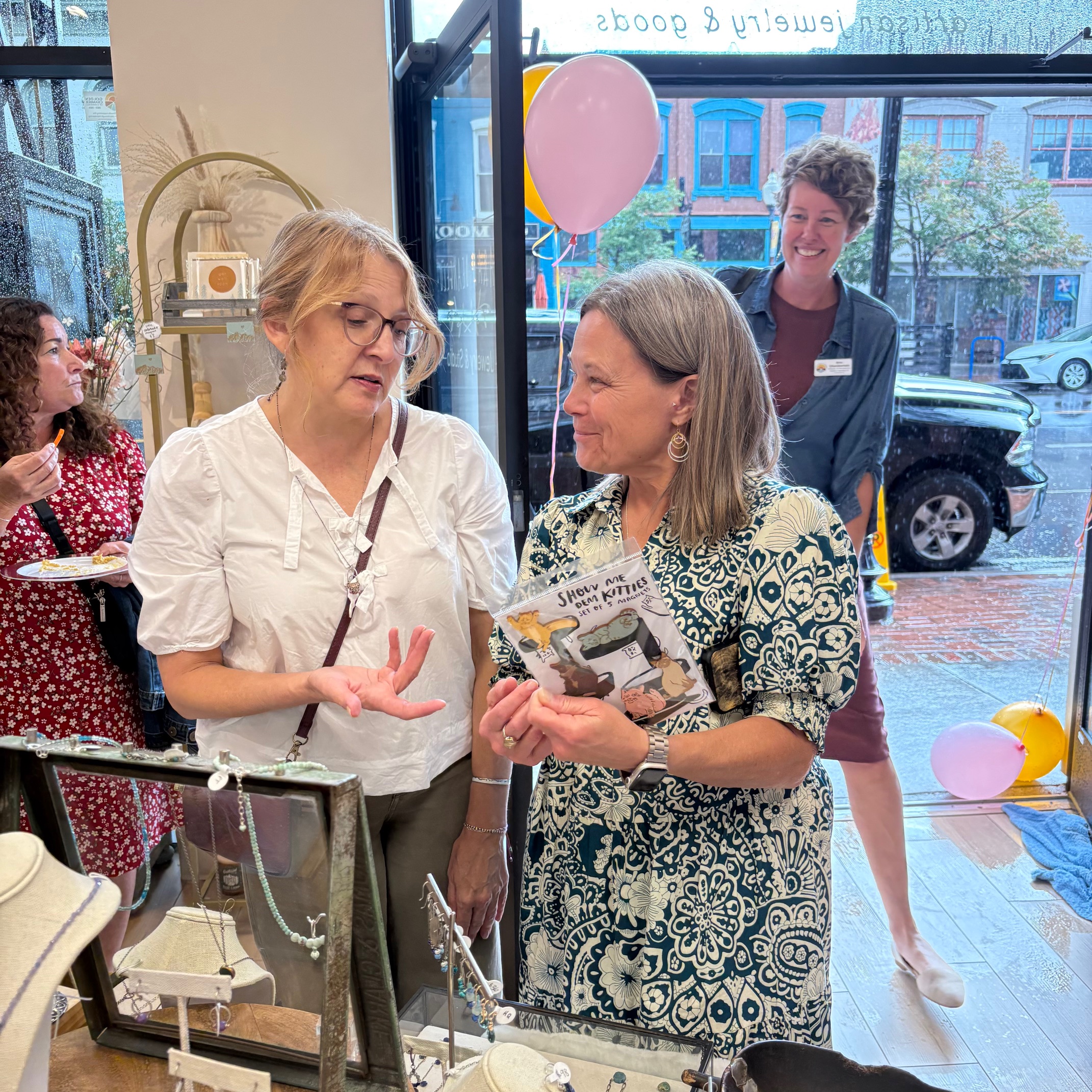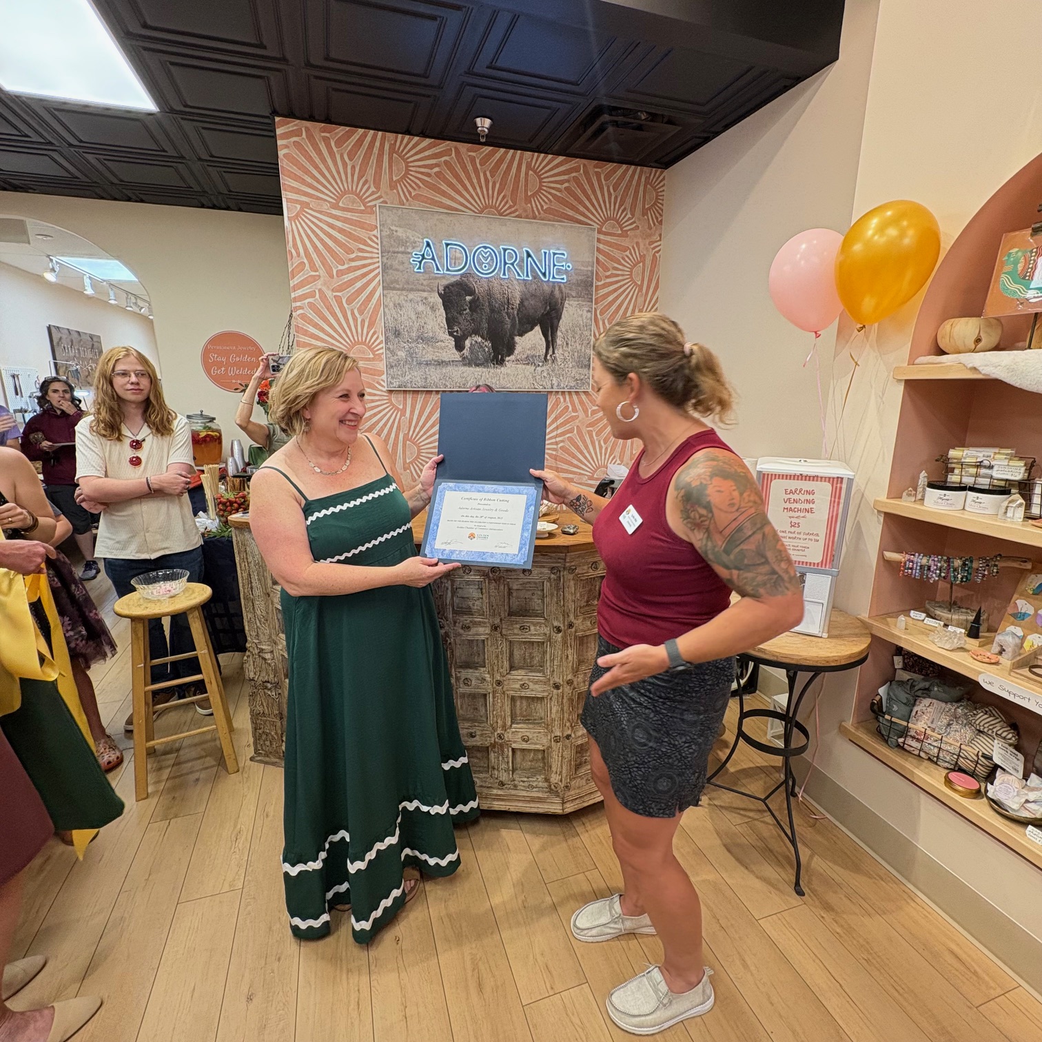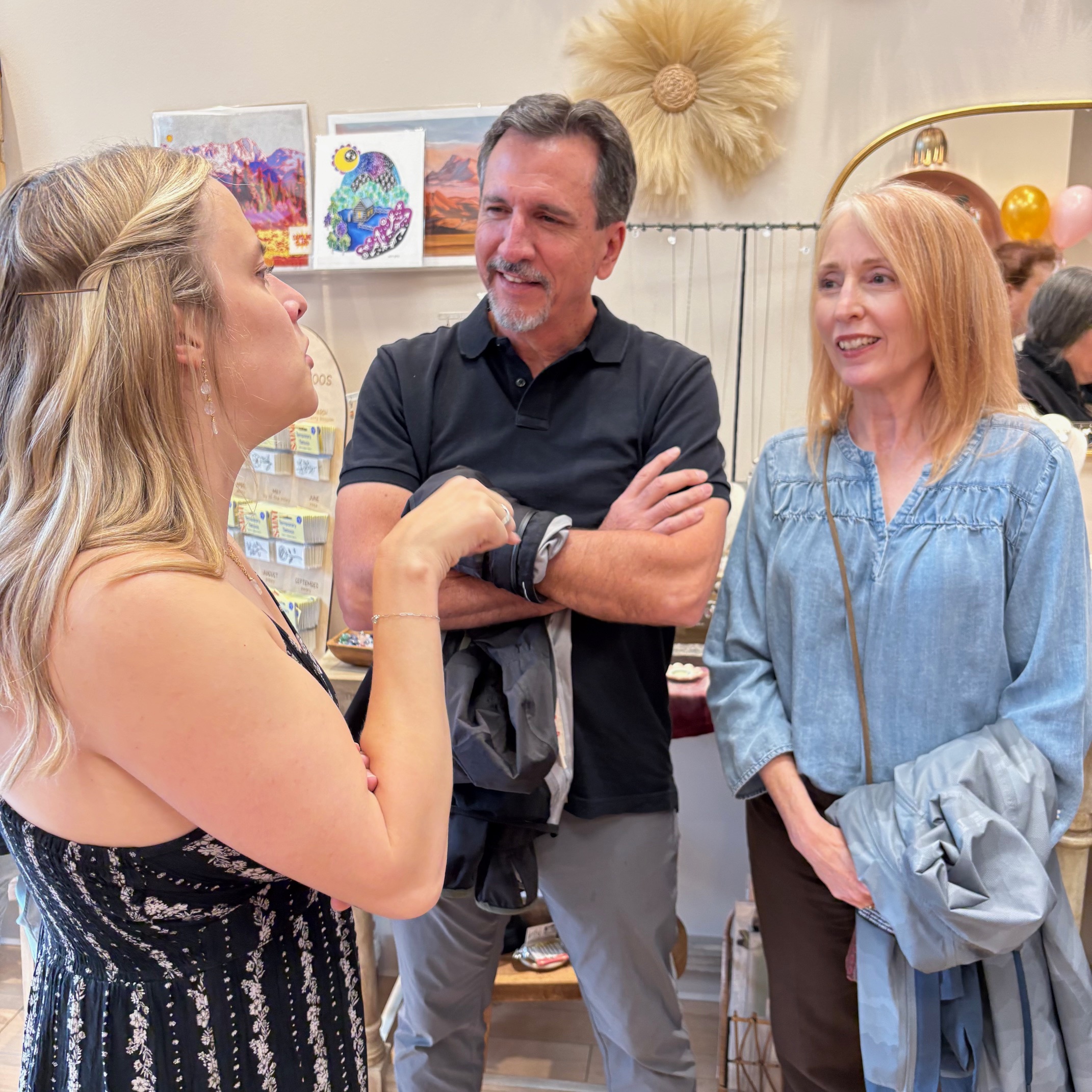 Adorne Artisan Jewelry and Goods is a new jewelry and gift store along Washington Avenue– with a very crowded and festive Ribbon Cutting ceremony at their Grand Opening celebration! The jewelry is all made right in the shop– along with showcasing more than fifty rotating local artists. Owner Sarah Deangelo has had other storefronts in Colorado and is excited to now be making Golden her home. Thank you to all the Chamber members, friends, and family members who flew in to help celebrate! What a great party surrounded by beautiful art and beautiful people!