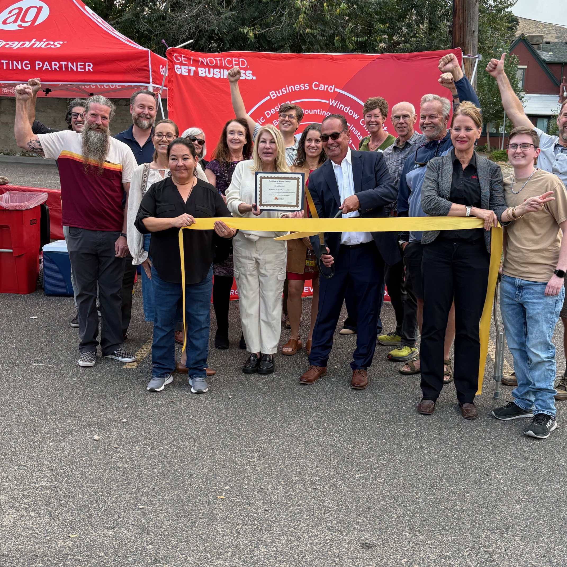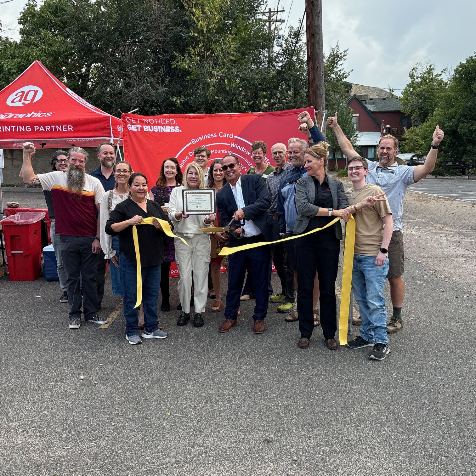 Congratulations to AlphaGraphics Golden @alphagraphics.golden for their grand re-opening in a new location with a Ribbon Cutting! What a great party with Mayor Laura Weinberg and other city officials, community members, business leaders, and family members in attendance. You can now find AlphaGraphics Golden at 900 13th Street– with their own parking on one side and street parking on the other. Their new digs are spacious and beautifully outfitted in their trademark red. We’re excited and thankful for all you do in the Golden community!