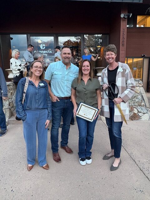 We’re so thrilled to be welcoming a THIRD location of Connects Workspace to Golden! In addition to their downtown and Red Rocks locations, there is now a Connects Genesee– right off I-70 at the Genesee exit. This space has all the accommodations and technology of the other locations– with a distinctly mountain feel, fabulous views, and deck space! There are co-working areas along with regular offices available for rent. The building also boasts several conference rooms, a fireplace, and easy parking. The Golden Chamber is thankful that owner Jennifer Thoemke continues to spread community and business within Golden. Congratulations to the whole team for their grand opening and ribbon cutting!