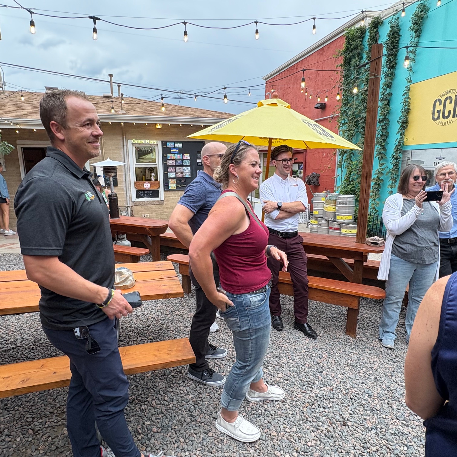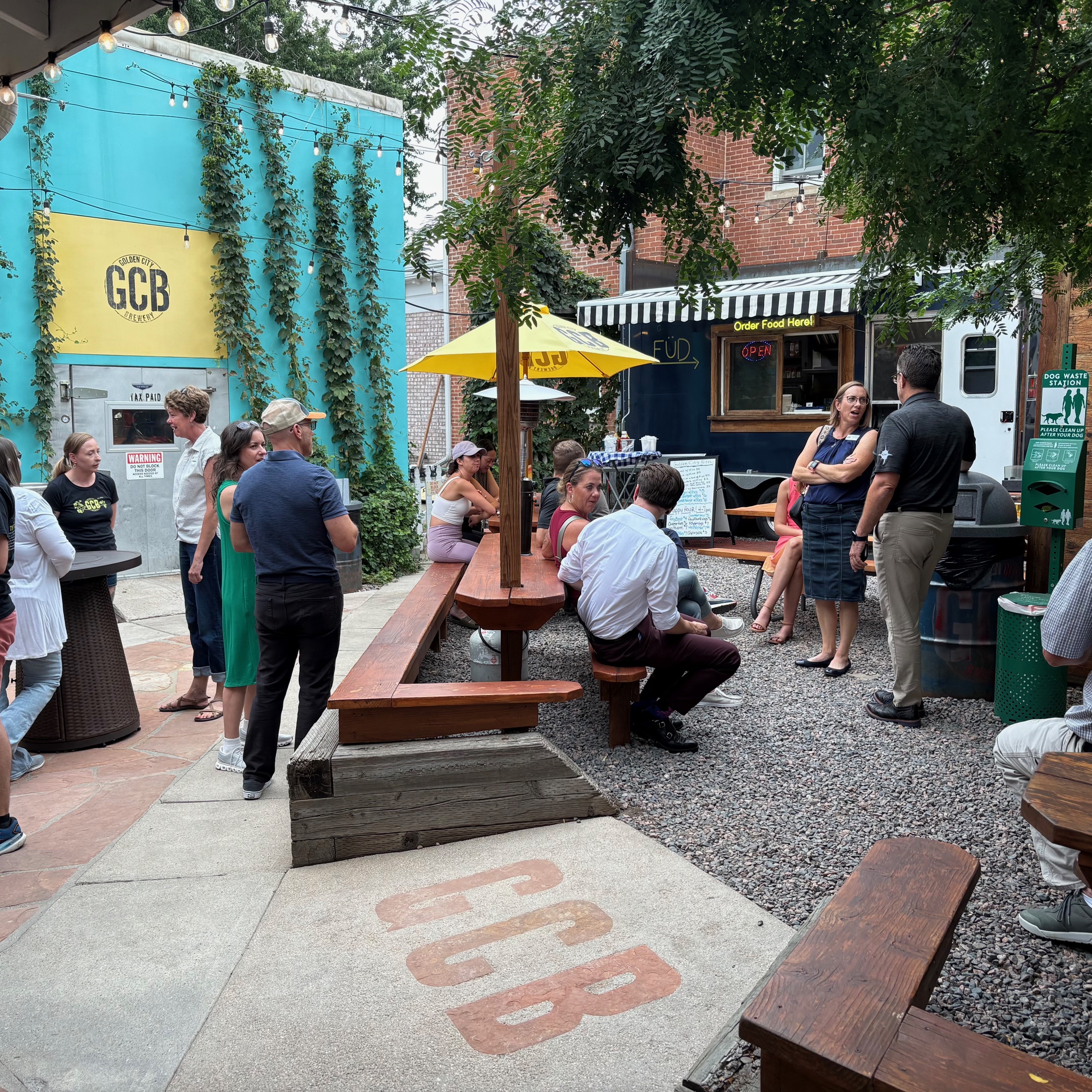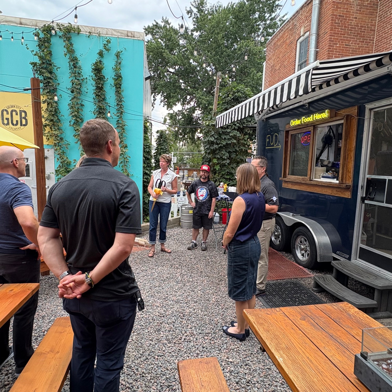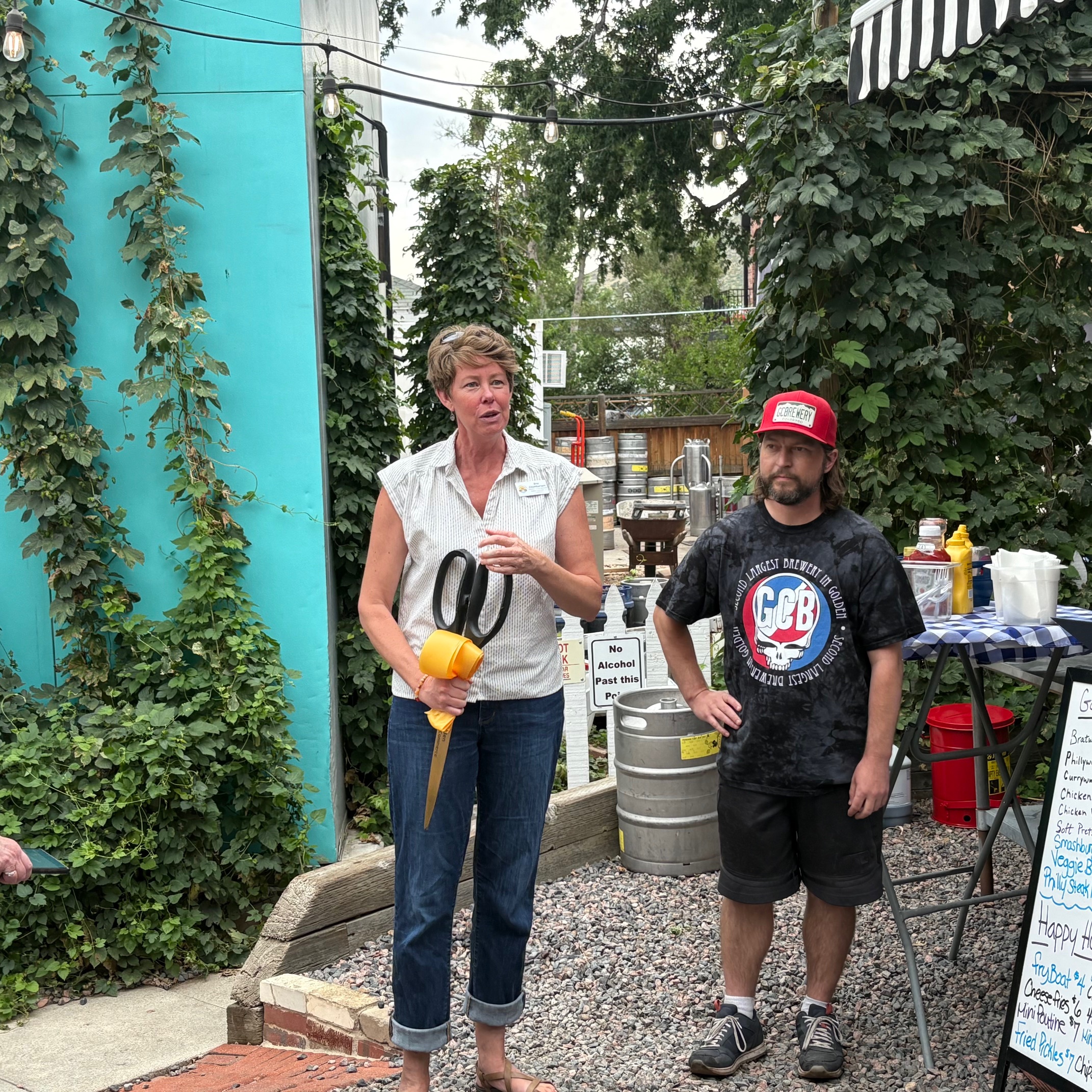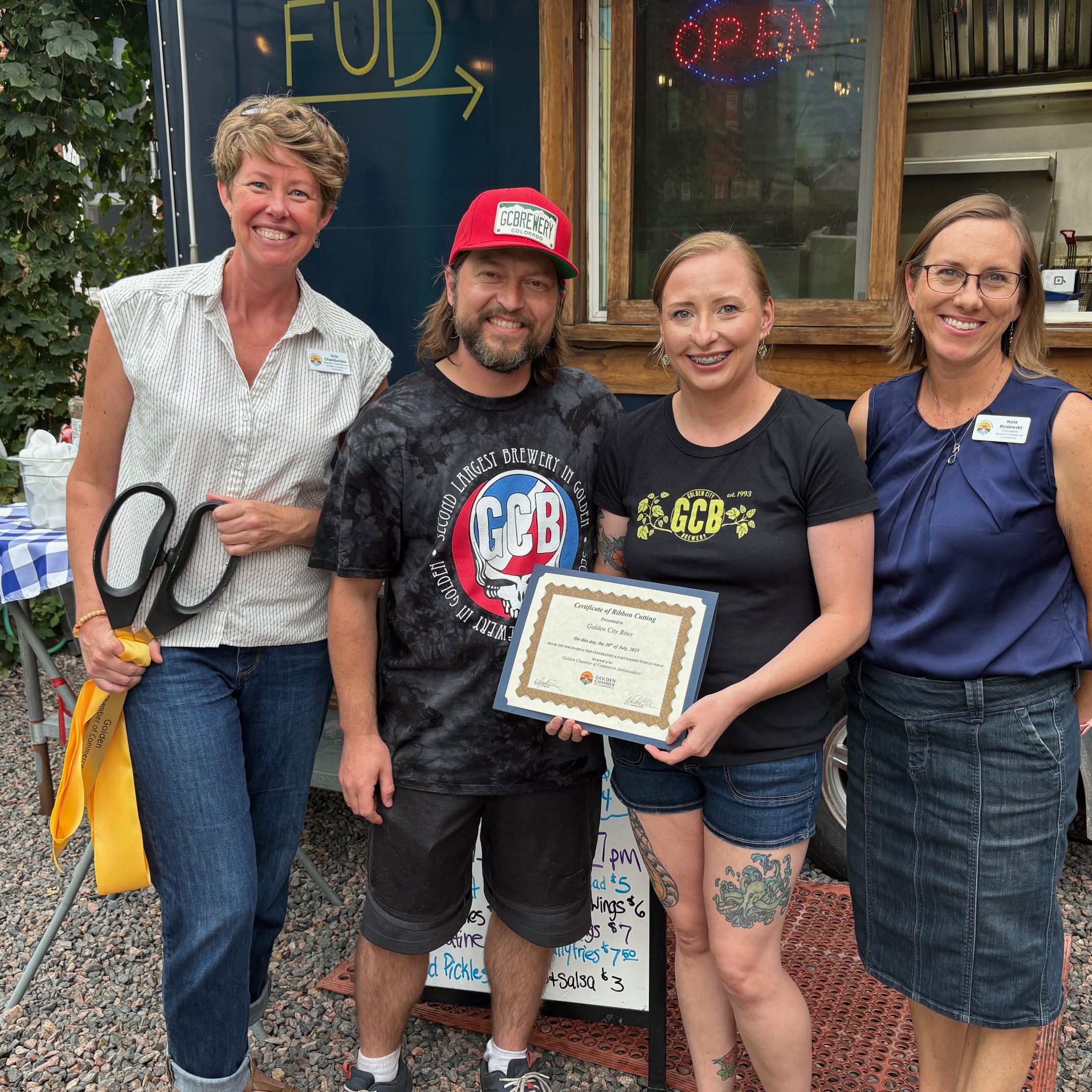Great food now accompanies great beer at Golden City Brewery with their on-site food truck restaurant– Golden City Bites! We were so excited to help celebrate with a ribbon cutting– including Mayor Laura Weinberg and City Councilperson Bill Fisher. Thank you to our fabulous Chamber Ambassadors and other community members for being here, too!