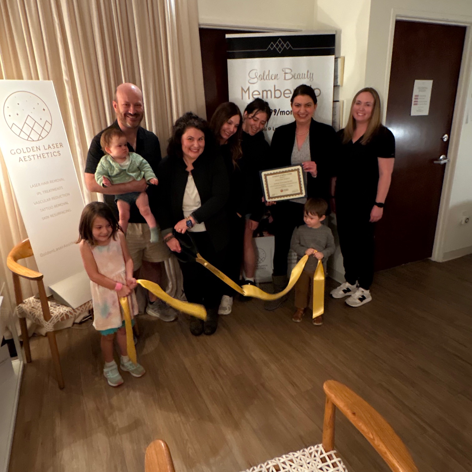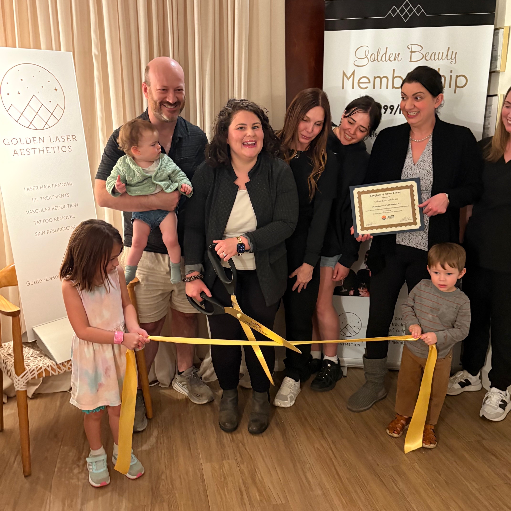 Congratulations to Golden Laser Aesthetics for nine years of business success in Golden! This luxurious medspa is all you need for your skincare– in your 20s through your 80s! Thank you for celebrating with a fun ribbon cutting– including your whole team and your family!