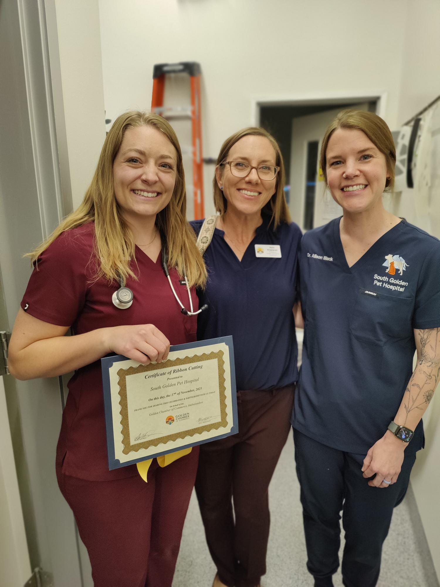Welcome, South Golden Pet Hospital! They are a new vet clinic and hospital servicing all kinds of pets in their location in the King Soopers complex on South Golden Road. Whether your pet needs routine wellness, advanced surgery, or help managing a complicated medical condition, their team is dedicated to caring for them. Urgent care is also available with a new office and state-of-the-art technology. Congratulations to this fabulous team on their ribbon cutting and joining the Golden Chamber of Commerce!